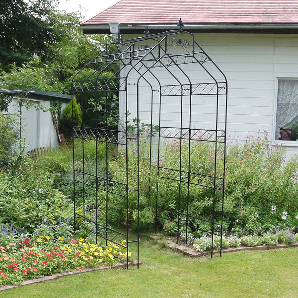 バラの花でいっぱいのアーチを夢見て……成長していくつるが、やがてバラの花いっぱいに。 コツコツと